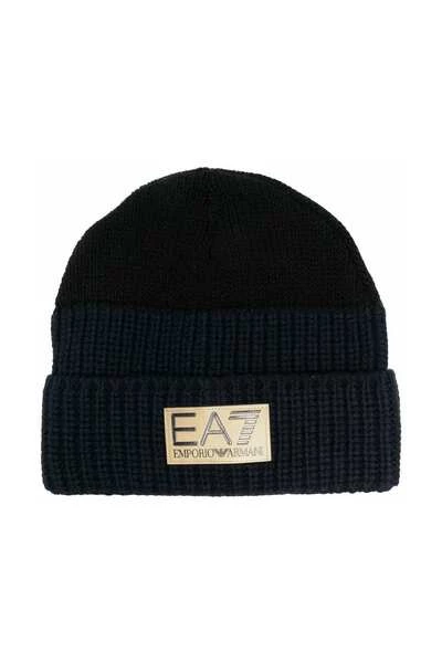 EA7 Hats Blue Logo-Patch Ribbe Beanie van EA7 Emporio Armani met marineblauwe, gebreide constructie, dikke geribbelde gebreide, logo-patch naar de voorkant en boordrand.