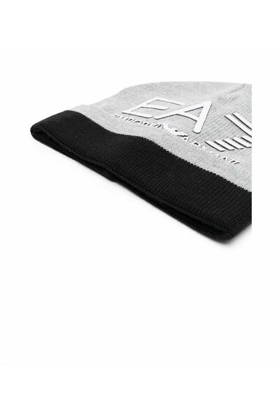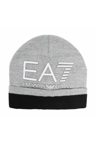 EA7 hoeden grijze logo-print beanie van EA7 Emporio Armani met grijs, mélange-effect, gebreide constructie, fijn gebreide, logo-print aan de voorkant en beurt rand.