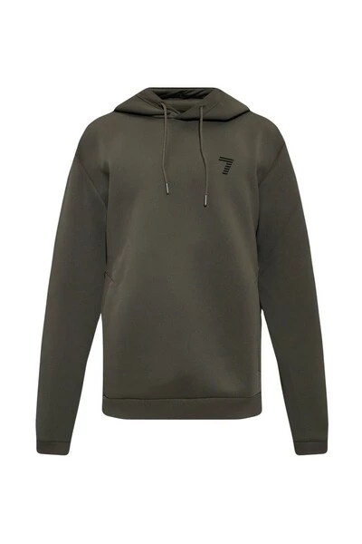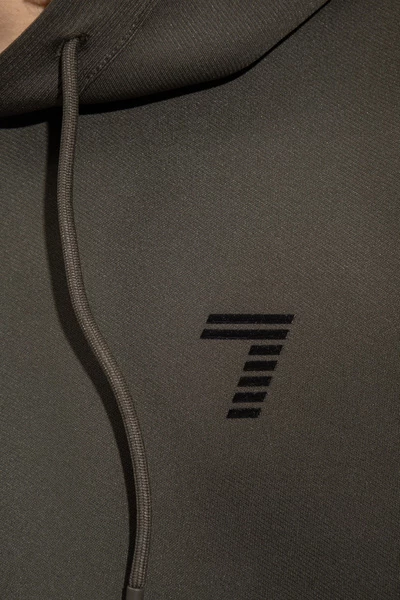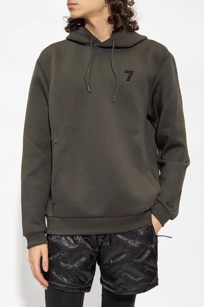 Donkergroen sweatshirt met een trekkoord kap van EA7 Emporio Armani. Gedrukt met een logo, heeft deze stijl een kangoeroe -zak en een elastische bodem zoom en manchetten.