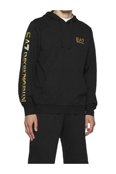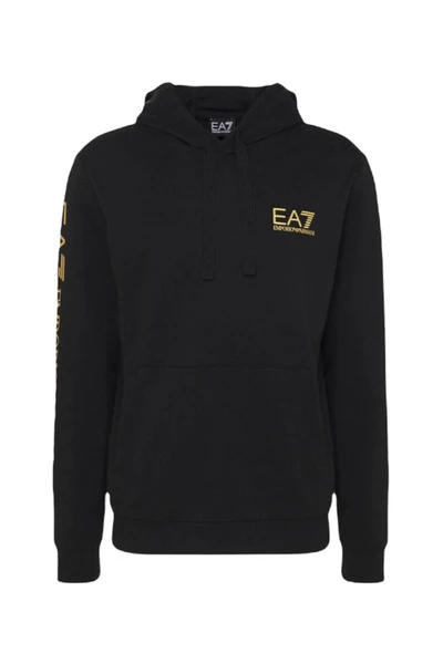 EA7 Emporio Armani Black Sweatshirt met herenkap. Aan de voorkant met contrasterende logo en twee zakken. Rechtermouw met contrasterend logo. Kap met trekkoord. Samenstelling: 97% 3% elastaan katoen.
