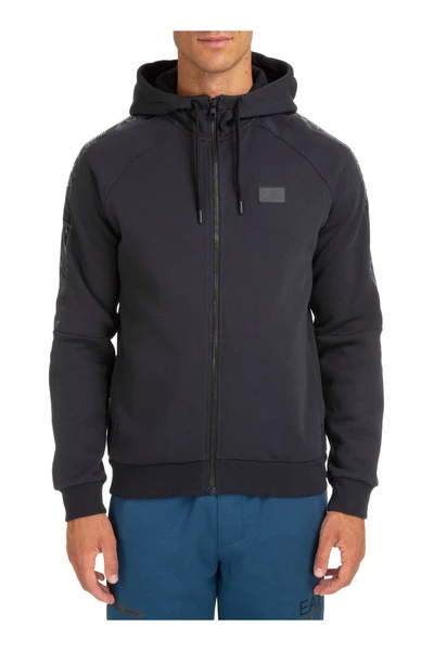 Characteristics: hoodie Closure: zip contrasting applications: logo detail Cuffs: ribbed cuffs Pattern: print, solid colour Pockets: two side pockets