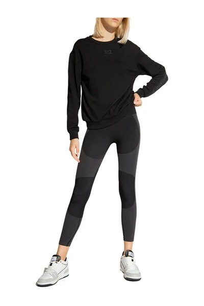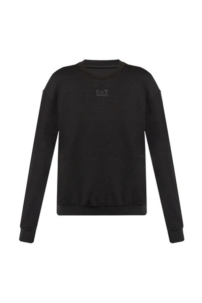 Black Crewneck Sweatshirt van EA7 Emporio Armani. Aan de voorkant met het logo van het merk bedrukt, heeft deze stijl een elastische kraag, onder zoom en manchetten en merk Lurex -banden aan de achterkant van de mouwen.