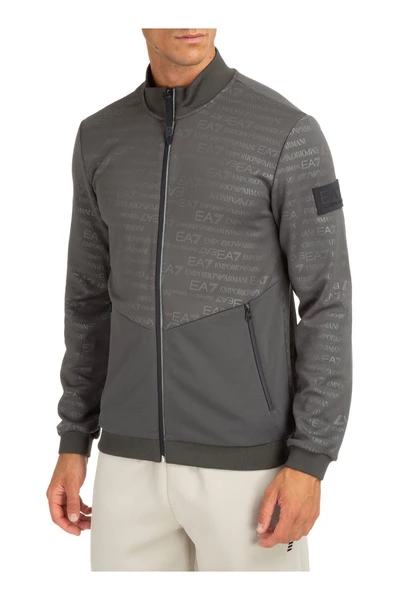 Closure: zip contrasting applications: logo detail Cuffs: ribbed collar, cuffs and hem Neckline: ribbed collar, round collar Pattern: logo design, solid colour Pockets: two side pockets