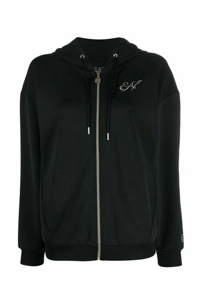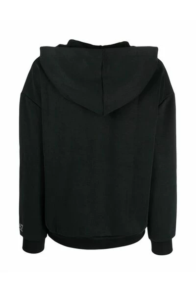 EA7 Sweaters Black Bordidered-Logo Zip-Up hoodie van EA7 Emporio Armani met jetzwart, katoenmix, geborduurd logo, klassieke kap, zip-aansluiting aan de voorkant, lange mouwen en geribbelde zoom. Bewust: dit item bevat ten minste 50% low-impact materialen, die worden gecertificeerd of algemeen worden erkend als een lagere impact op het milieu.