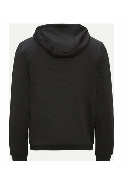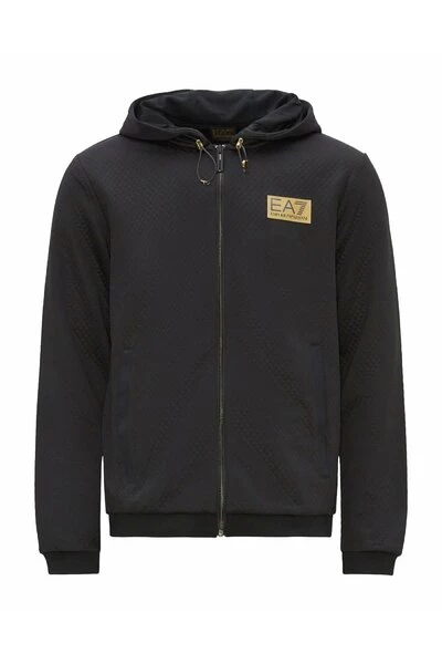 Gestructureerde ritssluiting – EA7. Tonen: zwarten. Rechte snede. Col: met kap. Lange mouwen. Logo: Patche. Sluiting: Zip. Onderhoud: machinaal wassen. Tip: neem uw gebruikelijke maat. Materiaal: 100% polyester.