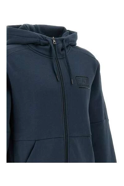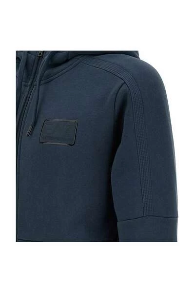 EA7 Sweaters Emporio Armani men& sweatshirt, blue navy, front closure with silver logoed zip, ribbed hems, adjustable hood with laces, front logo patch in the same color on left side of chest, two side pockets on front,ideal for Herfst- en winterseizoen.