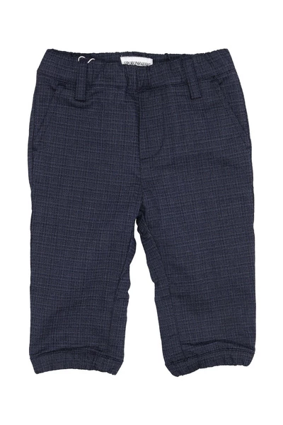 Emporio Armani Junior broek blauw – katoen – spoelzakken – elastische taille – riemlussen – achterste flapzakken – logo op de rechter achterzak