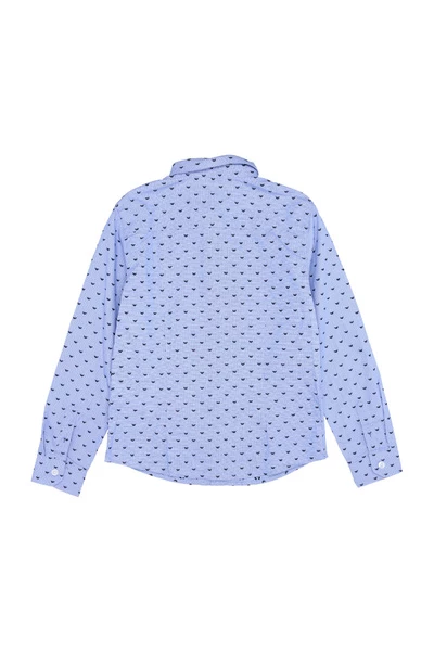 Emporio Armani Junior shirts helder blauw – katoen – puntige kraag – overal in micro -logo -afdruk – voorste knop placket – lange mouwen – knooperchetten