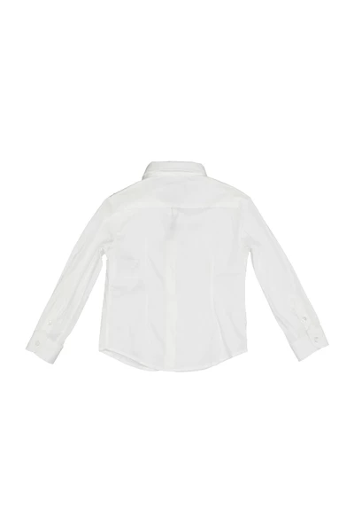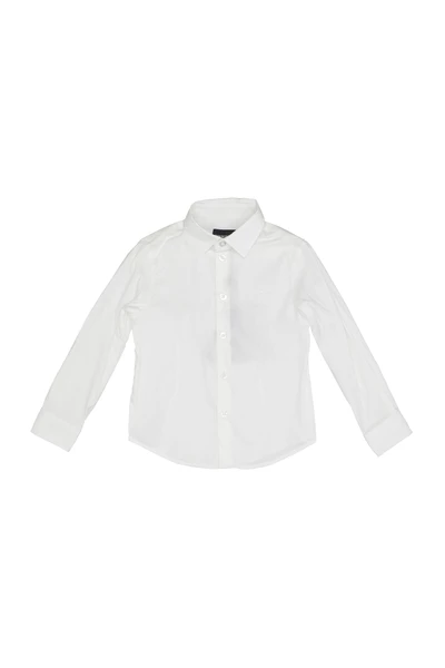 Emporio Armani Junior shirts wit – katoen – puntige kraag – geborduurd logo op borst – voorste sluiting met knoppen – manchetten met knoppen