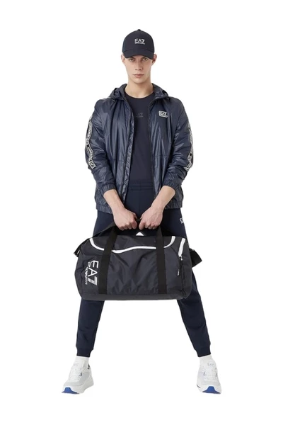 EA7 Emporio Armani Bomber in technische stof met Blue Man Hooded met twee zakken aan de voorkant met ritssluiting. Hoog rubberen logo aan de voorkant en voegt in het logo in de EA7 Emporio Armani aan de mouwen. Bomber Sluiting aan de voorkant met zip.