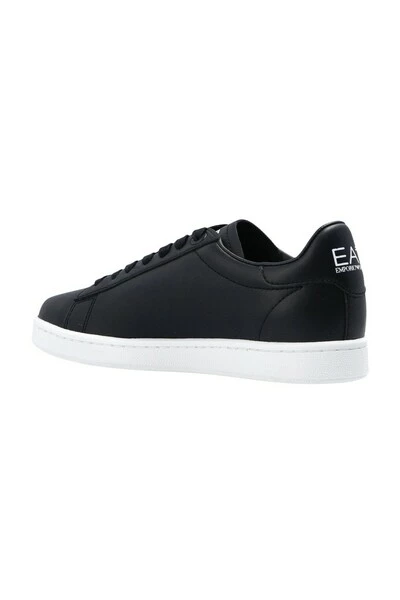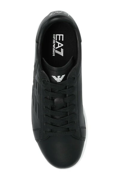 Zwarte sneakers van EA7 Emporio Armani. Gemaakt van runderleer, dit vetermodel beschikt over een verhoogd logo aan de zijkant, wit logo met details op de tong en achterkant en een witte rubberen zool aan de basis.