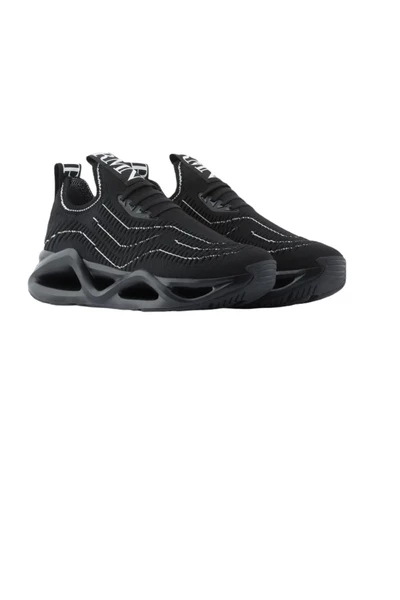 EA7 Emporio Armani Sneakers Men. Zwarte canvas sneakers met logo op het tabblad.