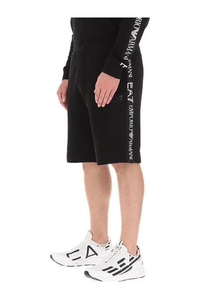 EA7 Emporio Armani zwarte herenborrels met elastisch leven en trekkoord. In de voorkant twee zakken. Kant met logo. Samenstelling: 84% katoen, 16% polyester.