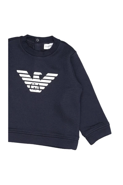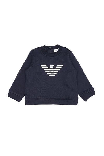 Emporio Armani Junior Sweaters Blue – Cotton – Maxi Logo op voorste nek – Lange mouwen – Achterafsluiting met snap -knoppen