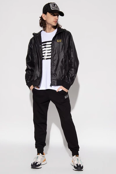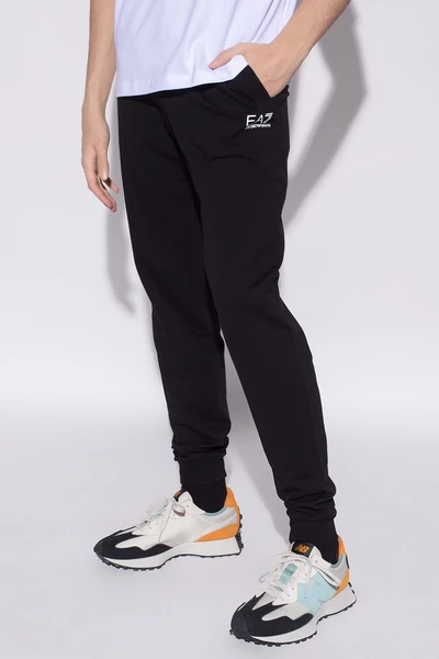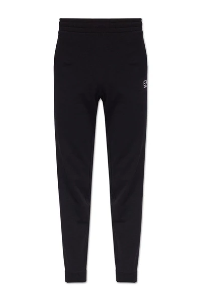 Zwarte joggingbroek van EA7 Emporio Armani. Gemaakt van katoen, dit kledingstuk beschikt over een elastische tailleband met trekkings, witte logo-afdrukken, twee slipzakken en geribbelde manchetten.