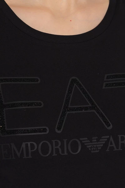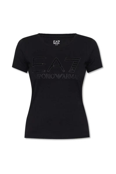 Zwart t-shirt van EA7 Emporio Armani. Gemaakt van katoen, dit ontwerp met korte mouwen beschikt over een geribbelde bemanningshals en logo met glanzende applicaties.